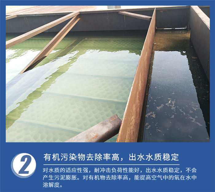 污水經(jīng)沉淀池出來與其它生活污水匯總后進(jìn)入污水處理站,利用格柵池隔除較大的雜質(zhì)及漂浮物,污水自流至調(diào)節(jié)池,這樣既可以調(diào)節(jié)水量,又可以均衡水源。調(diào)節(jié)池采取地埋式,池頂可植上草皮。經(jīng)調(diào)節(jié)后的污水用排污泵提升至生化池。
